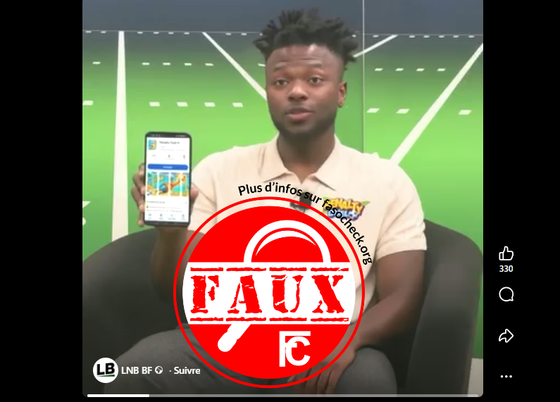 Reprises par plusieurs pages Facebook(1,2,3,4,5), des vidéos d’une durée moyenne de 50 secondes font la promotion d’un jeu mobile dénommé “Penalty duel”. Parmi ces pages, on peut lire sur “LNB BF” ces propos attribués au joueur Edmond Tapsoba: “Chaque habitant du Burkina Faso peut gagner entre quatre-cent et un-million de Francs simplement en jouant quelques minutes par jour à penalty duel Le développeur garantit un gain de quatre vingt dix sept pour cent …” Ou encore sur “Poly Me”, une journaliste du média BF1 affirmant que “Le footballeur Edmond Tapsoba a soutenu le lancement du nouveau jeu mobile, penalty duel. Il donne à chaque habitant du Burkina Faso la chance de gagner un et 10 millions de francs, simplement en marquant des buts”.